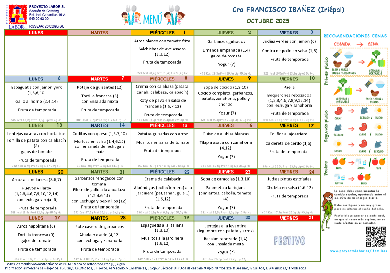 Bienvenidos a la sección del Comedor Escolar del CRA Francisco Ibáñez.